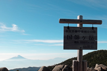 | 国師ガ岳山頂を見ながら | 国師ガ岳山頂(後方富士山) |