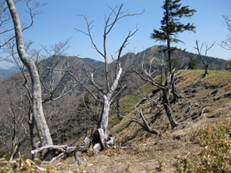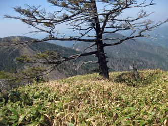 | ガレの斜面から山が見え | 笹の尾根道 |