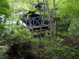 三頭山は頂上部分が3つのピーク(東、中央、西峰)から成っている名前というが、この西峰山頂は広く、ベンチもたくさんで見晴らしも良い。ここから富士山の展望が素晴らしいという。今日は天気が良いのに高曇りで三つ峠山等は見えるのだが、富士山は残念ながら見えない。山頂には7〜8人の登山者がゆっくり休んでいる。吹き抜ける風が涼しく、15分ほど休んで三頭大滝経由で下ることにした。西原峠方面に下って、ブナ林の中、どんどん下ってムシカリ峠から左に折れて三頭沢沿いの道を下る。沢を左右に渡り、色々な鳥のさえずりを聞きながら、橋を渡る。右の吊り橋から豪快な三頭大滝を眺め、チップが敷かれ整備された道を駐車場へと向かう。12:22分にバス停に到着。13時発の直通バスに乗って武蔵五日市駅へと向かった。 |