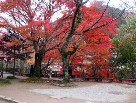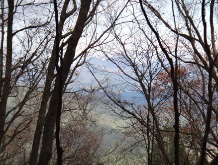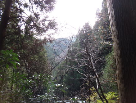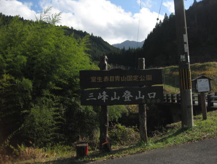 林道を渡って又、植林内を下る。谷音が聞こえ朝、通過した林道”登り尾コース”登山口に戻った。結局、今日は誰にも会わず暖かな晩秋の三峰山だった。