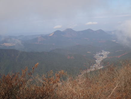 明るく広い山頂からは、北斜面に素晴らしい展望が広がり、古光山から倶留尊山、大洞山、鈴鹿山地方面は雲が広がっていた。