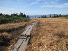| 登山道 | 乳頭山を見ながら | 田沢湖を見ながら木道を歩く |