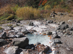 | 岩肌の地熱と飛行機雲 | 孫六温泉 | 大釜温泉 |