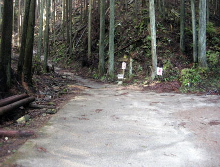 新鹿路トンネルを抜け、三津集落の細い道を進む。案内板がないので登山口にたどりつけるのか心配になりながらそのまま直進する。