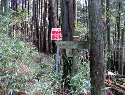 この山は伝説が多く名所旧跡があるというが、この三津コースでは植林内を登るだけなのでやはり山口神社から登るべきだった。 |