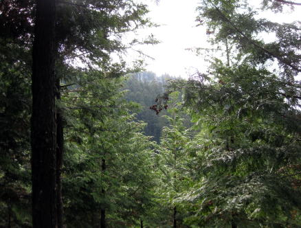セメントで固められた登山道には倒木や脇の土などが流れて荒れているが、しばらく進むと植林内の快適な道が続く。