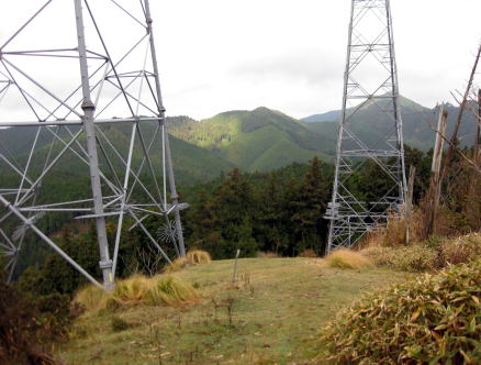 竜門岳がチラッと見え、植林から抜け出て鉄塔が建つ草原地になった。ここが唯一展望が開けた場所だった。