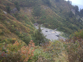 | 午前中、冠山に登って福井県池田町から廻ってきたので、白山スーパー林道入り口に着いたのは14:30頃分だった。明日三方岩岳に登る予定だったが、明日は雨の予報なので急遽このまま三方岩岳に登ることにした。白山スーパー林道入り口で切符を買うと”三方岩岳にこれから登るのは無理です。5時までには下りてくださいよ。”と云われる。三方岩岳駐車場までは30分位かかるというので早く到着したいのだが、前方の車は紅葉を楽しみながら運転してるようで超スロー運転。イライラしながらそれでも15時駐車場に到着。 |