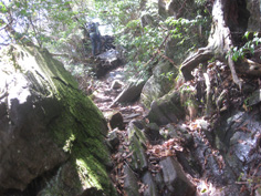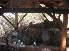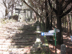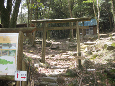 | 稜線上の縦走路 | 鳥居脇の役行者の石像 | 山頂への登山道 |