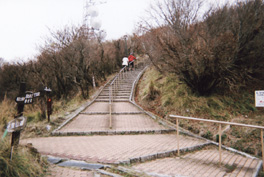 | 山上駅から鳥居をくぐって | 階段場の道を行く | 鶴見岳山頂(後は由布岳) |