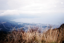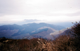 | 山頂から遠く久住山を望む | 山頂からの別府の街 |