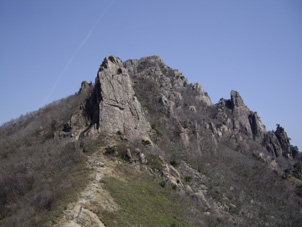 | 山頂 | 山頂から下りた分岐から山頂を見る |